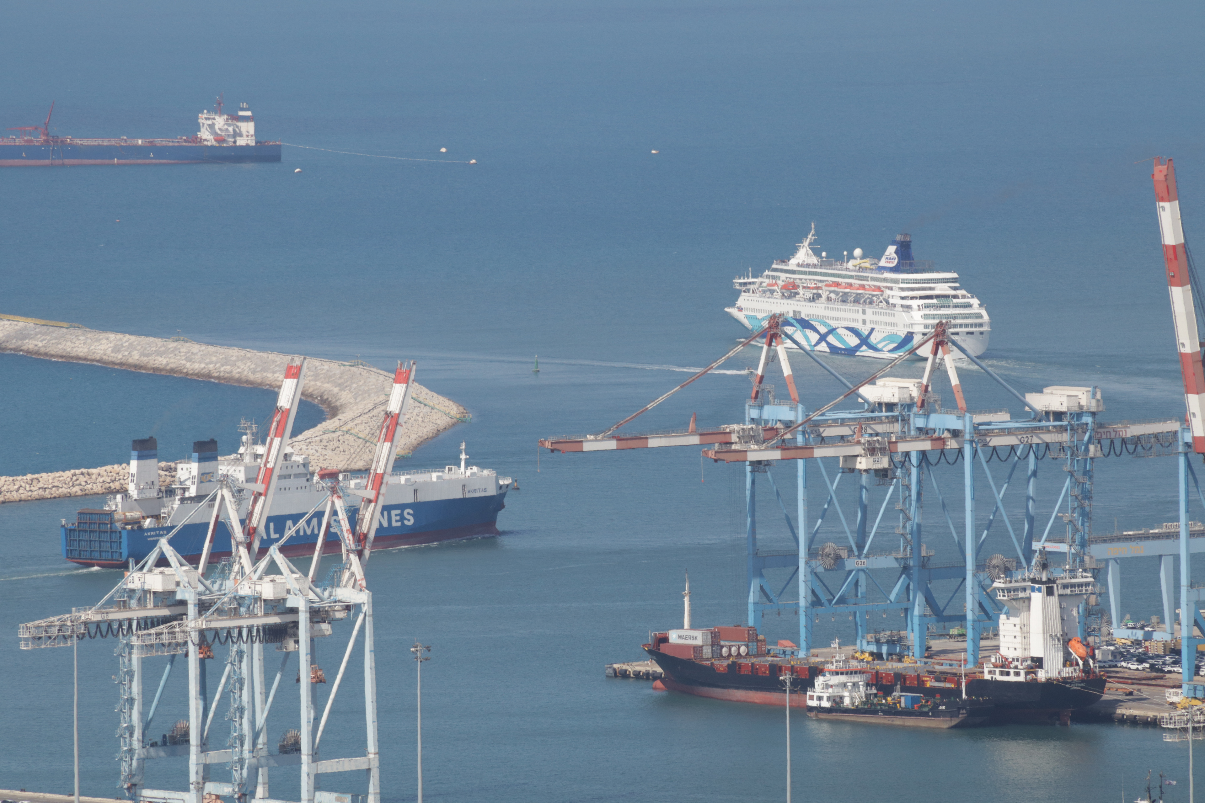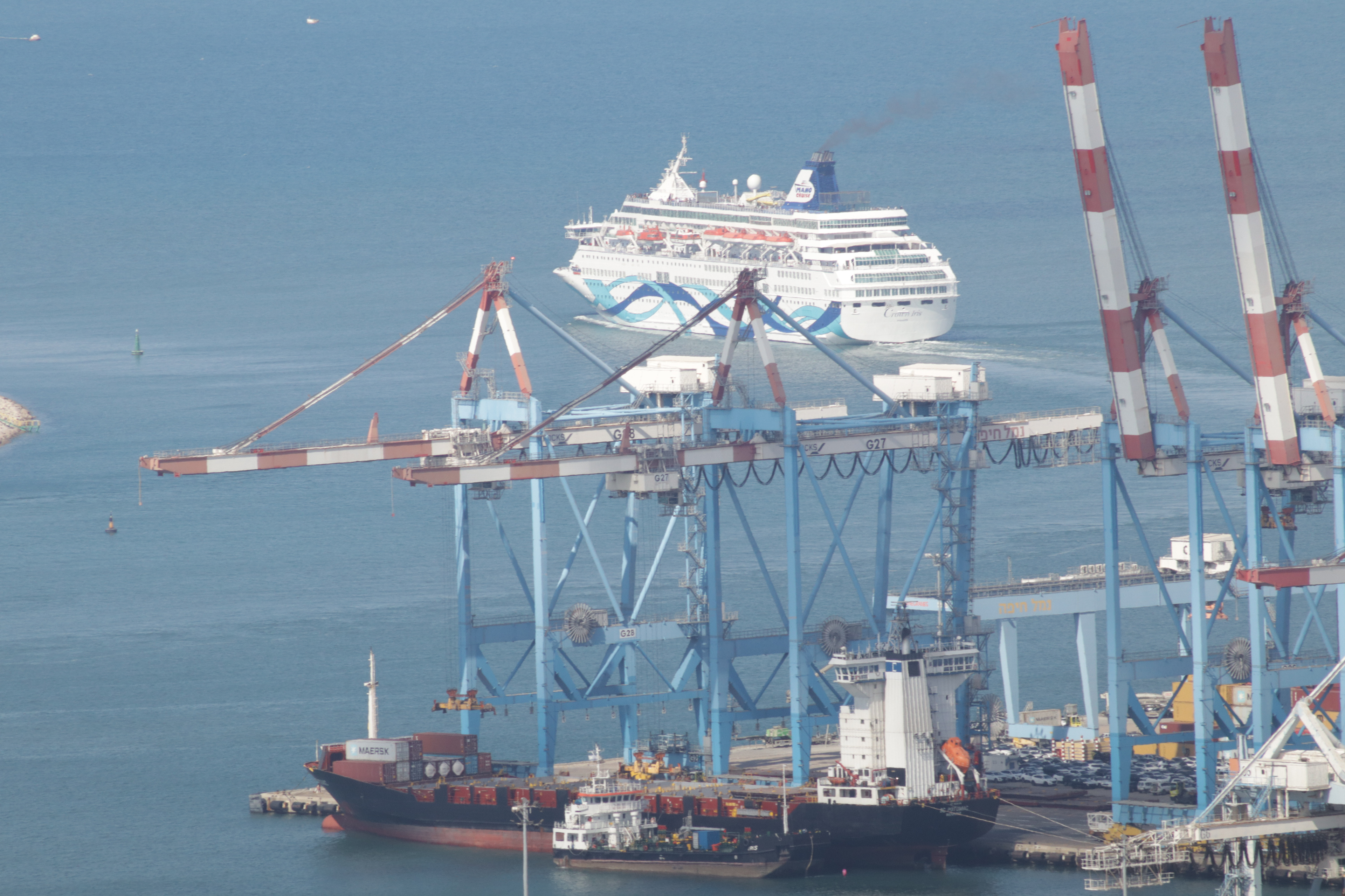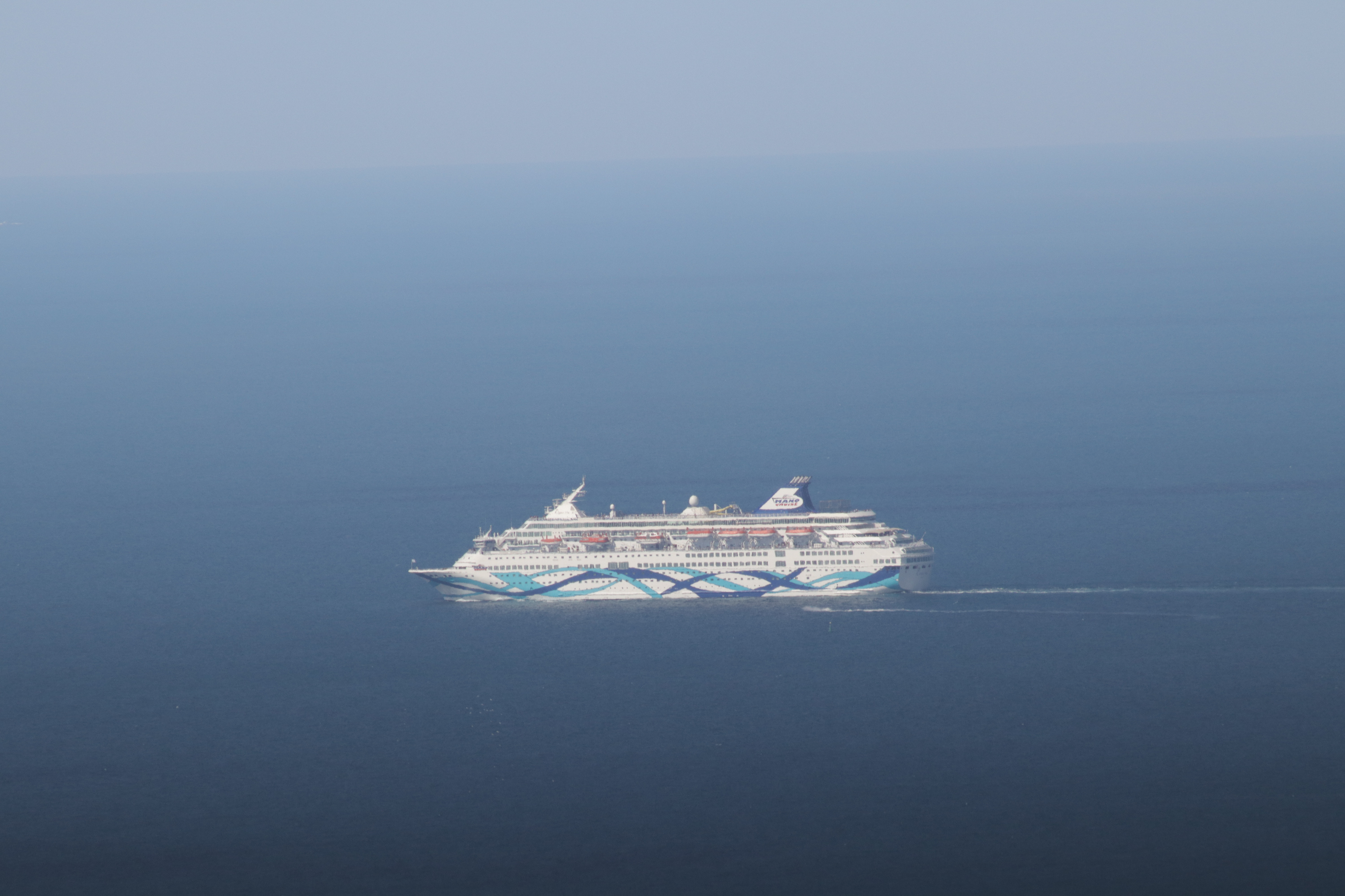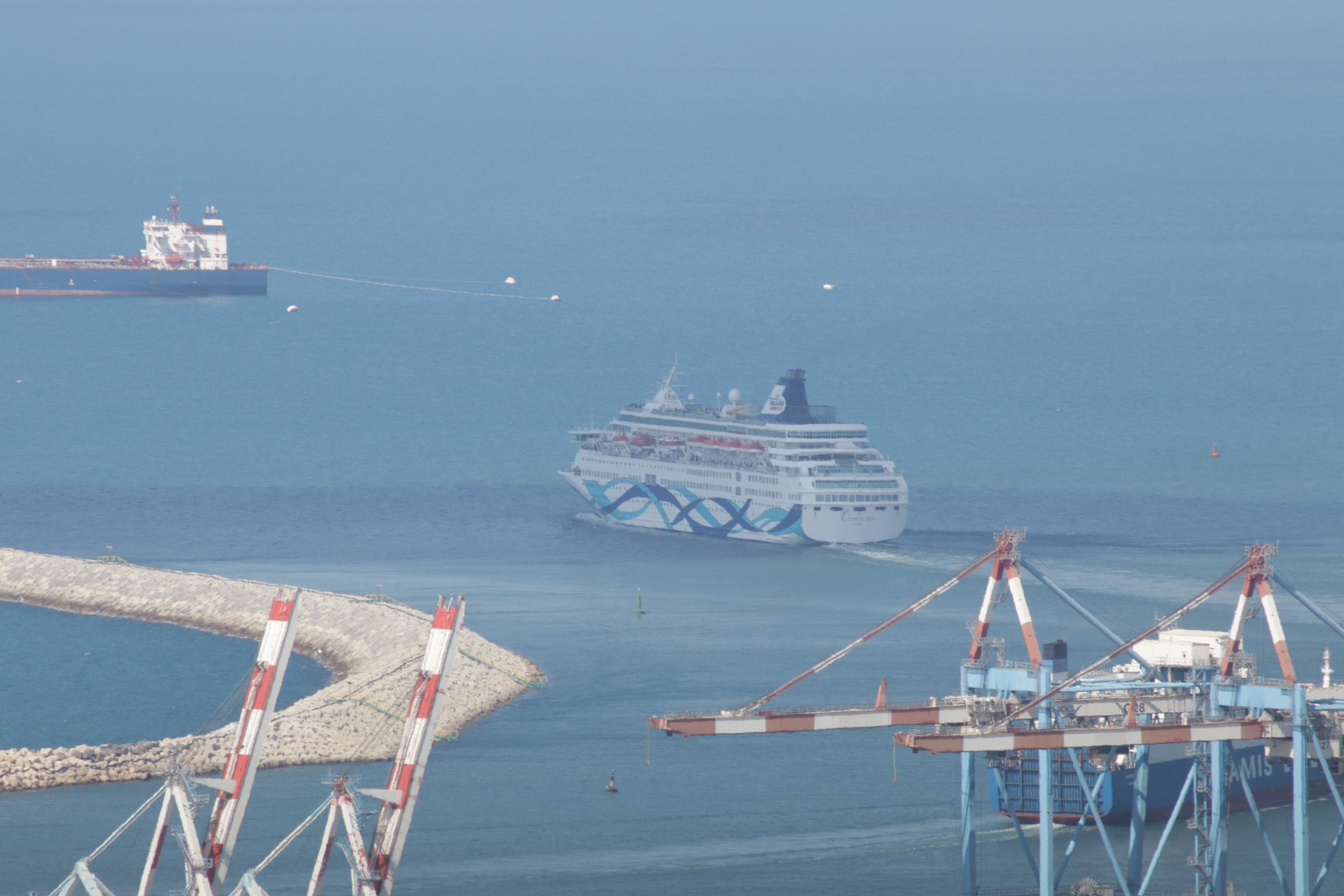Continuing through the port, we are greeted by more cranes, rising like modern titans, towering over the ever-present sea. The AIDA cruise ship appears again, this time heading out towards the open sea, leaving the port behind in its wake. The juxtaposition of the cruise ship’s smooth, white exterior with the utilitarian steel of the port's cranes underscores the multifaceted nature of a bustling harbor, where freight and pleasure intertwine.
